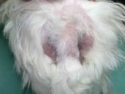 À force de grattage, on constate une perte de poils (alopécie) massive. La peau devient rouge vif, parsemée de croûtes et de boutons disgracieux. Avec le temps, l’épiderme s’épaissit et noircit considérablement.